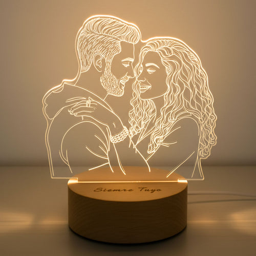 Lámpara de Acrílico Personalizada con Foto y Marco de Madera