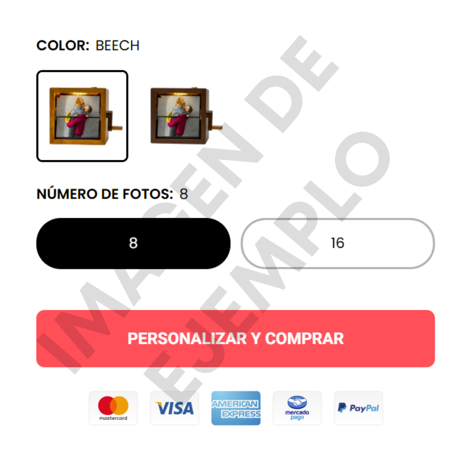 Elige el color y cantidad de fotos. Luego da clic en “Personalizar y comprar” para comenzar.