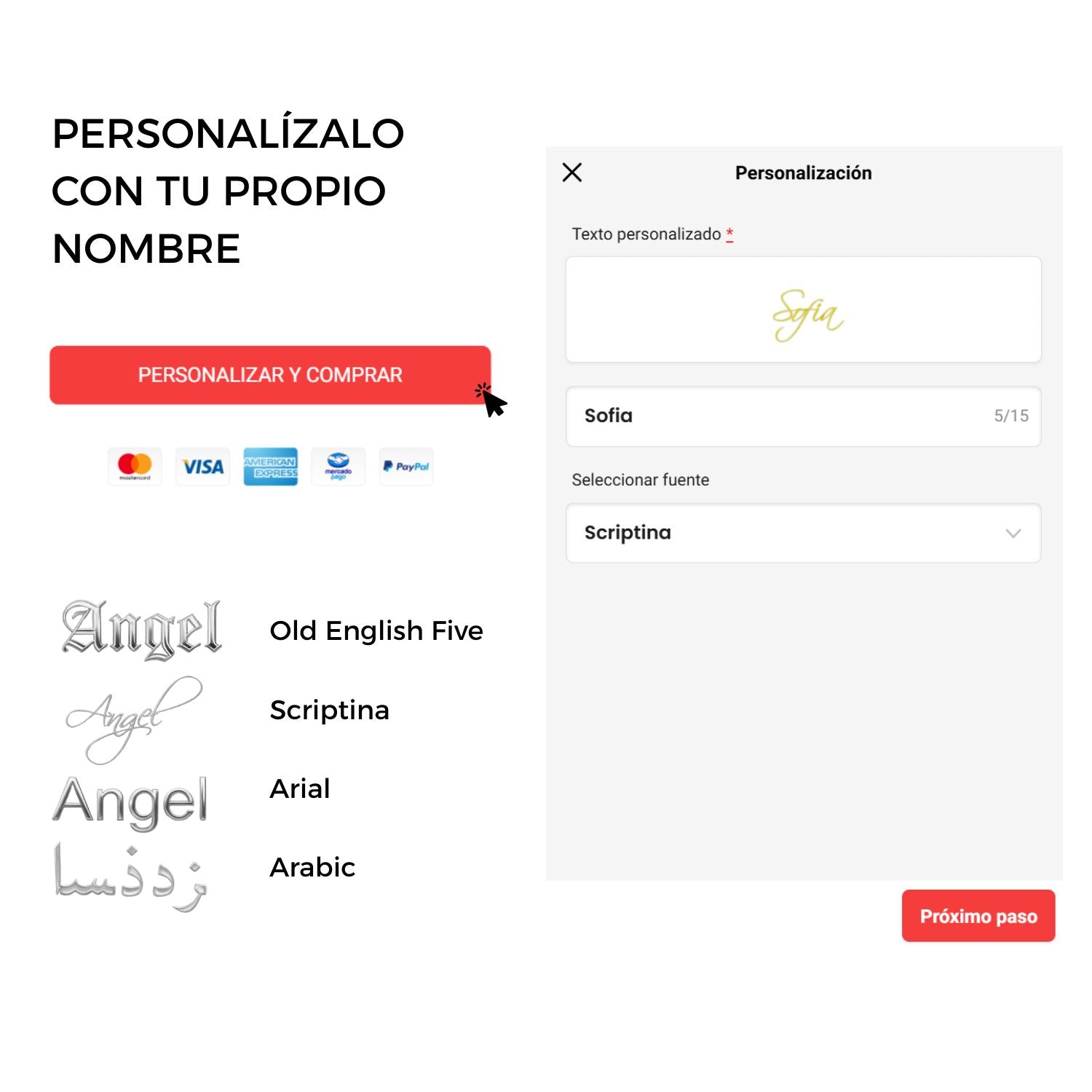 Elige el estilo, tamaño, color u otras opciones disponibles. Luego da clic en “Personalizar y comprar” para comenzar.