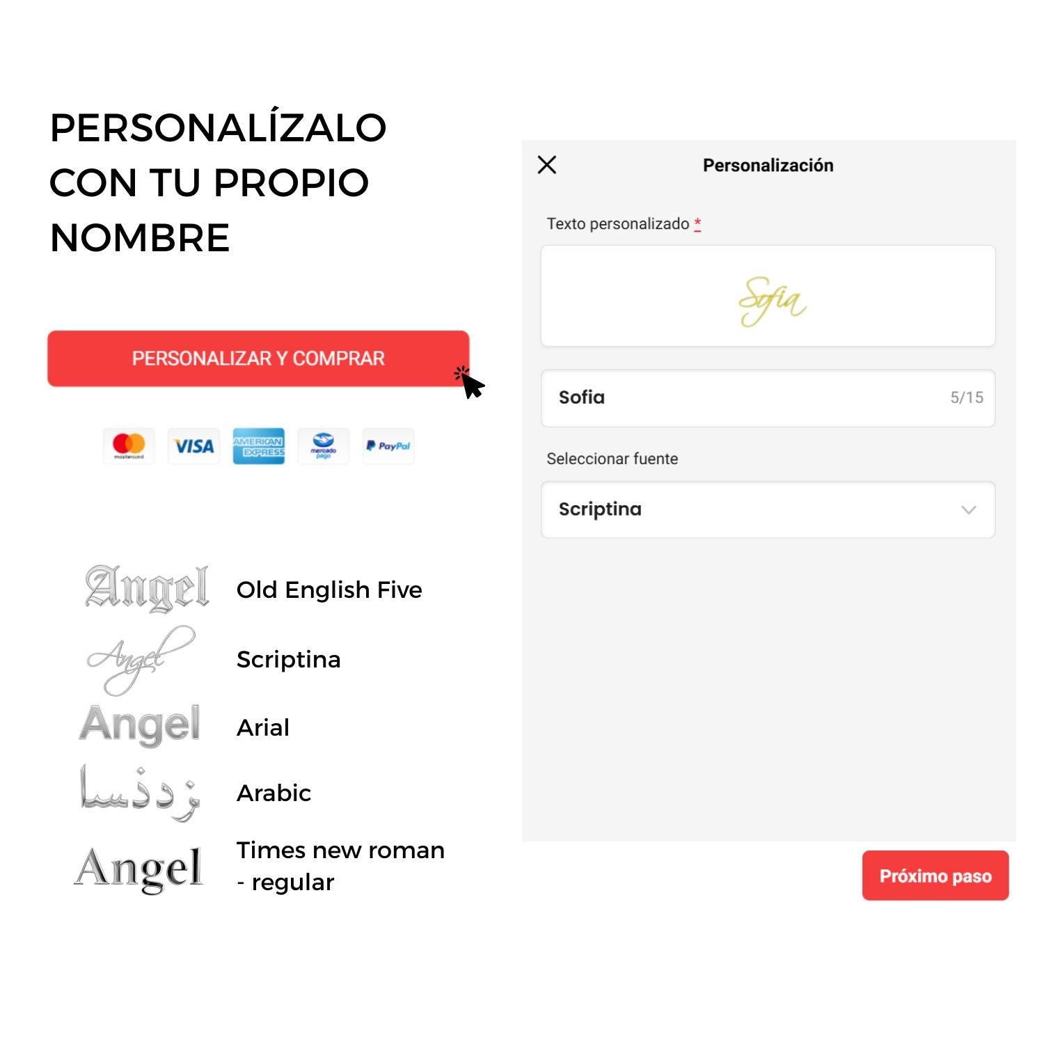 ✔ Personalización de Nombre: Diseño horizontal con tipografía estilizada para un toque moderno.